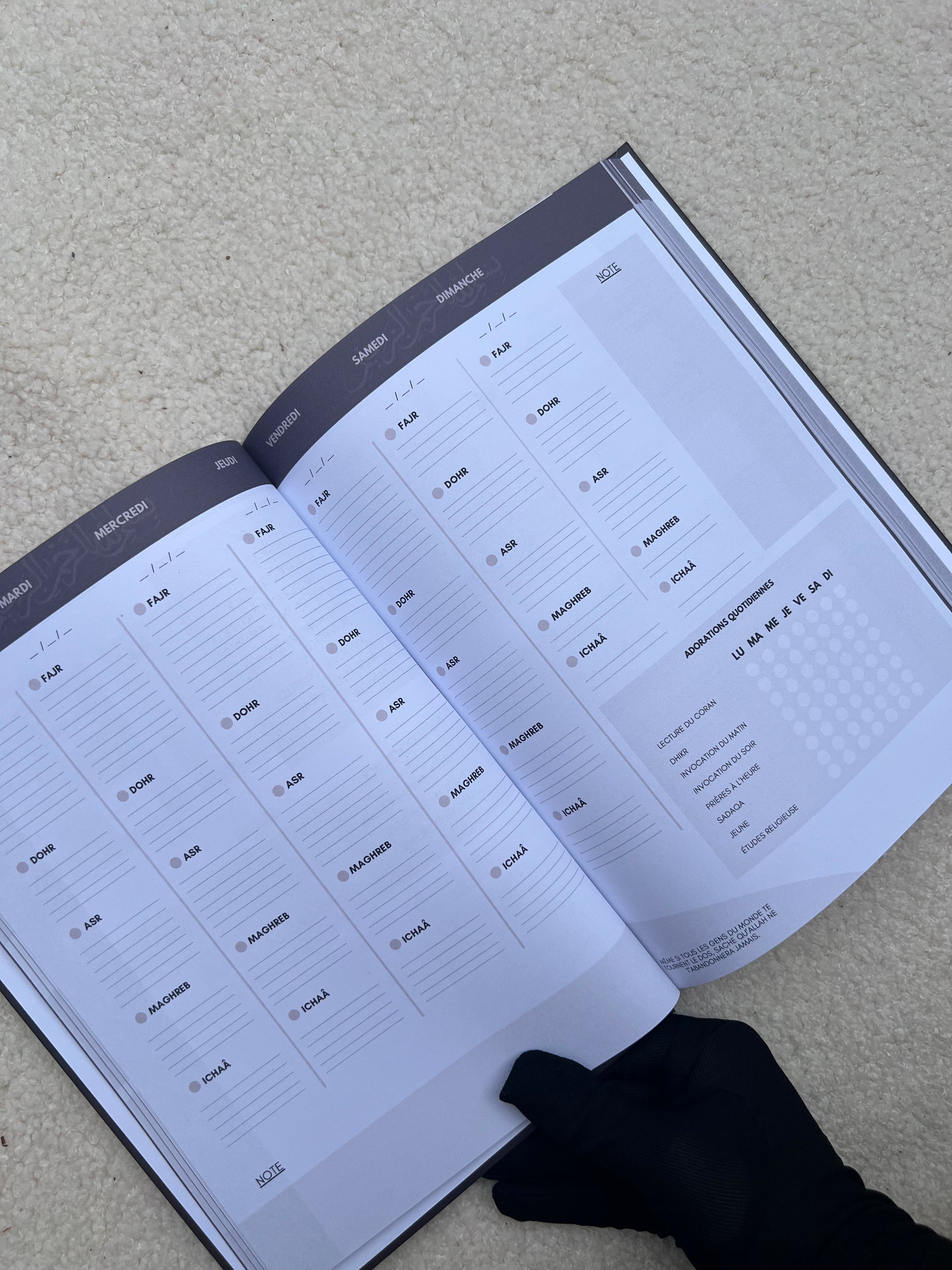 Conçu spécialement pour la femme musulmane, AN NÛR est bien plus qu’un agenda : c’est un guide pour ancrer l’Islam au cœur de chaque journée.