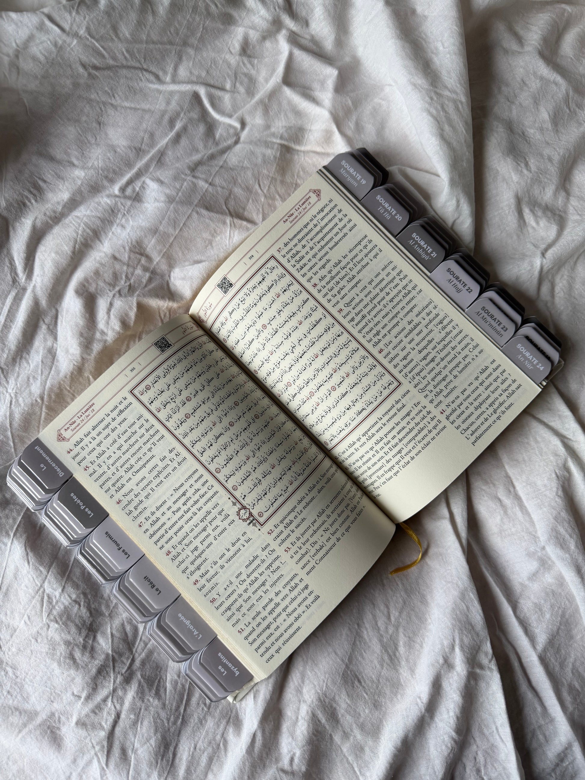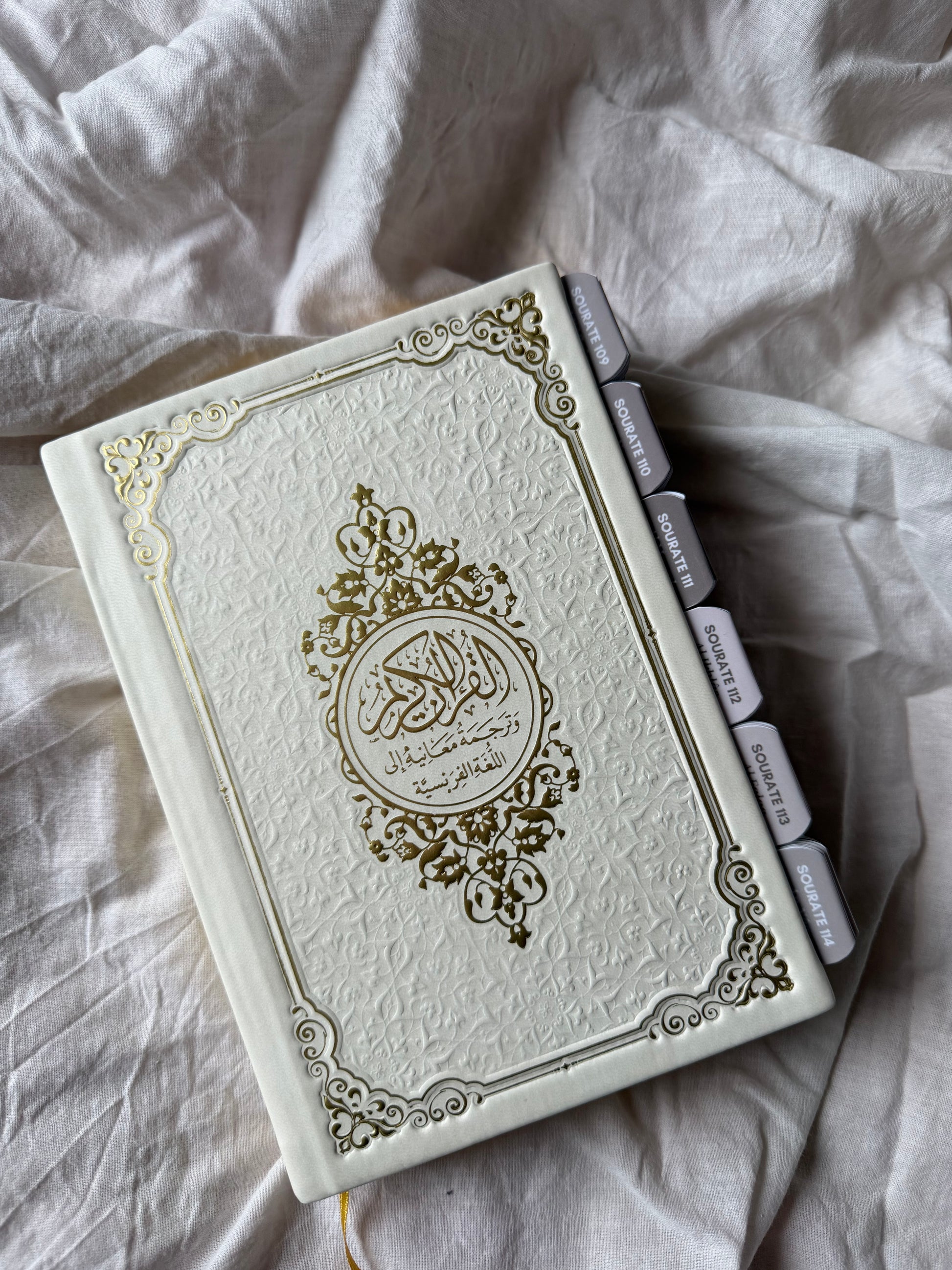 Coran en arabe avec traduction française, présenté dans une édition raffinée au format idéal pour accompagner la lecture quotidienne comme les déplacements.