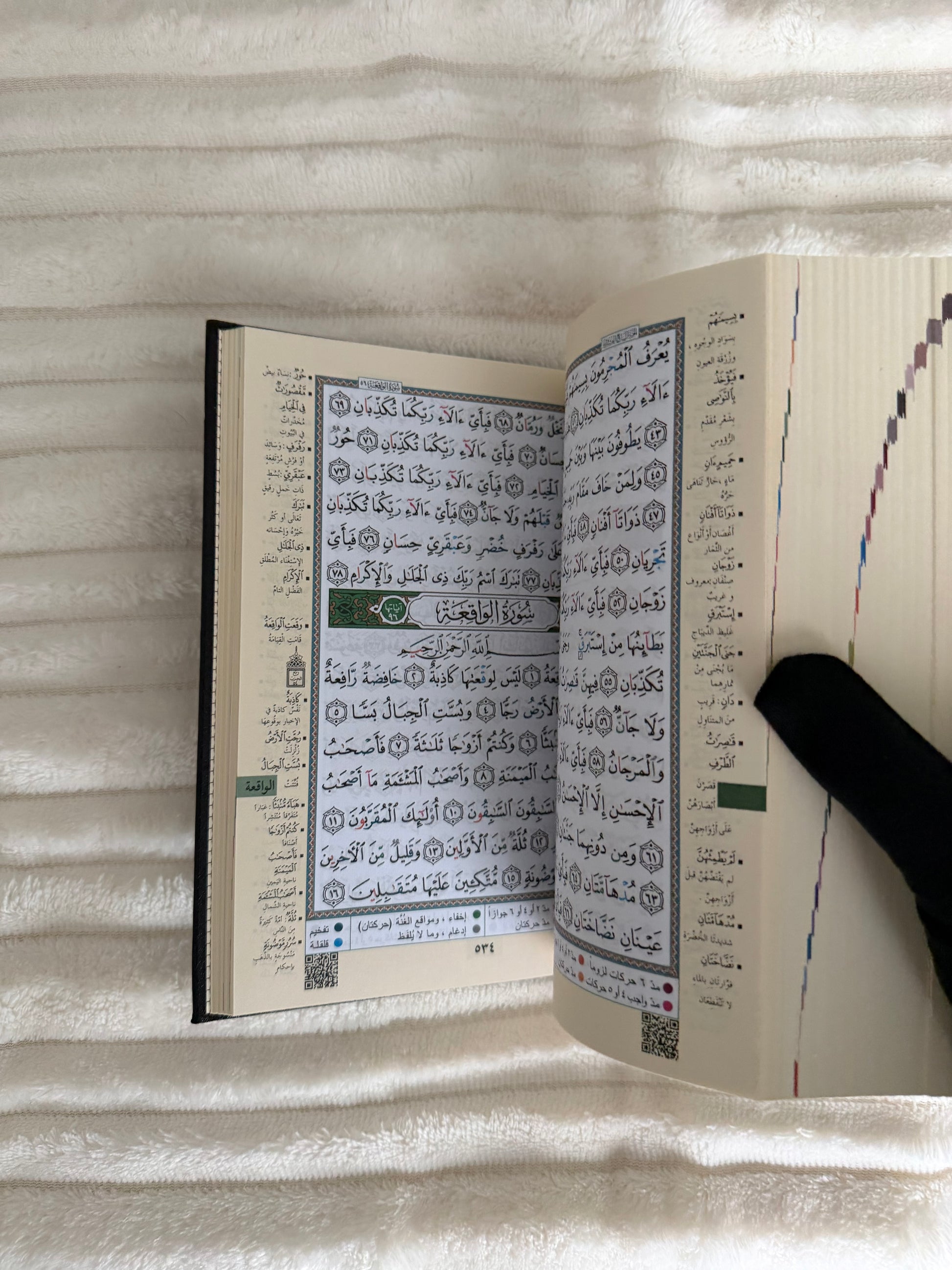 Ce Coran en version arabe présente les règles de tajwid avec un code couleurs appropriée pour faciliter l'apprentissage et la mémorisation du Saint Coran.