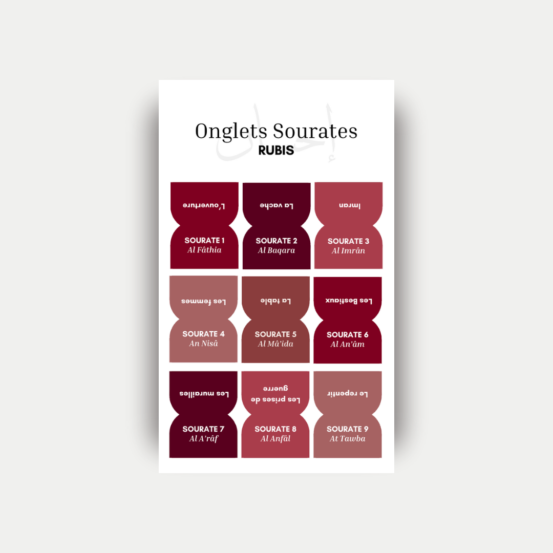 Facilitez votre lecture et votre étude du Coran avec nos onglets sourates & Juz !